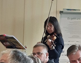 Umrahmt von der Geigerin Christina Volkmer von der Lebenshilfe Garbsen und der Moderatorin Angela Thimian-Milz löste die Veranstaltung viel Anteilnahme und Betroffenheit bei den Teilnehmern aus.