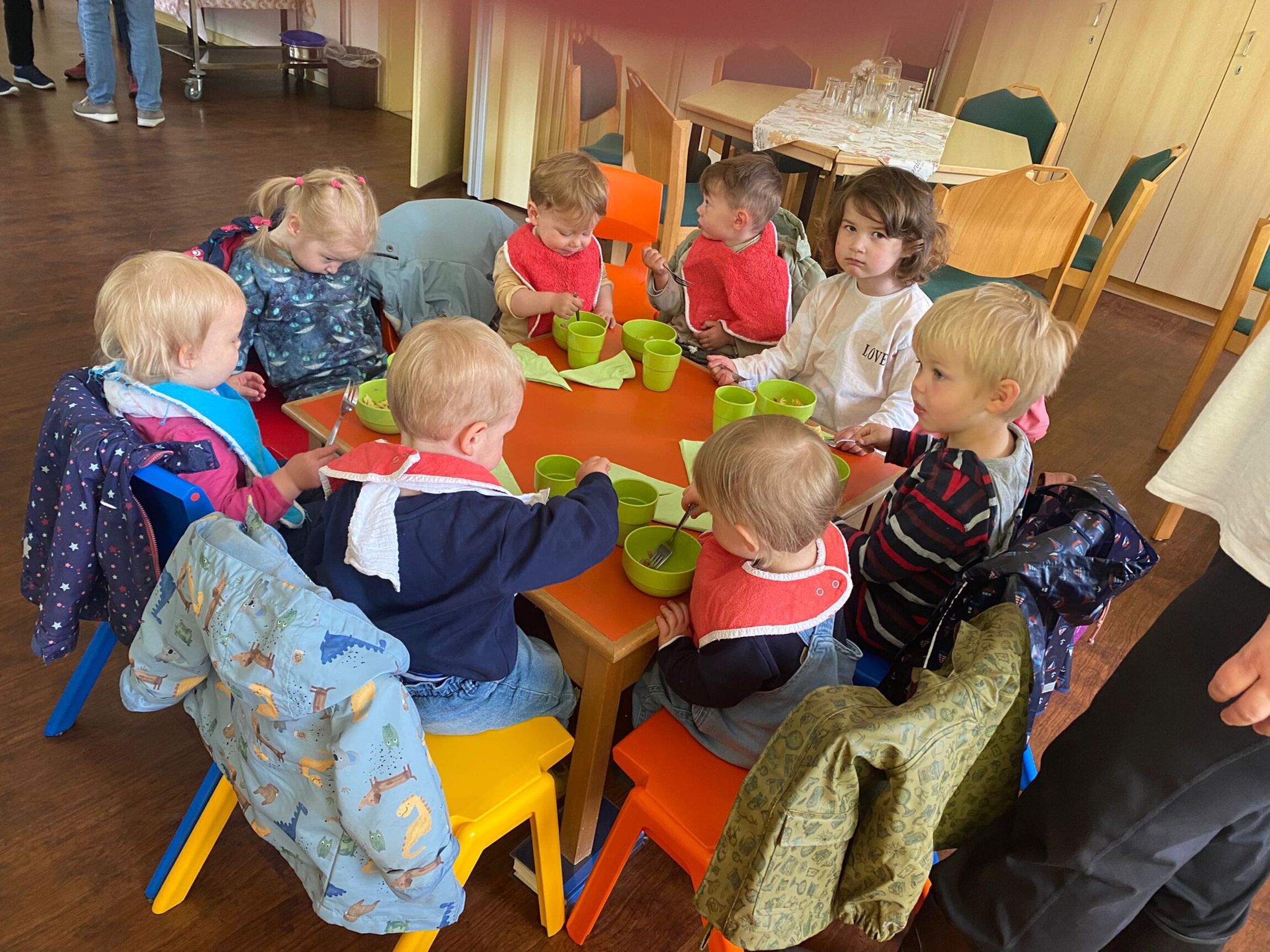 Die Krippenkinder haben sich riesig gefreut, waren aber mindestens genauso aufgeregt. Es gab Nudelauflauf, der von allen Kindern als lecker bewertet wurde. Besonders lecker war natürlich noch der Pudding, der zum Nachtisch gereicht wurde. Spätestens da war klar: