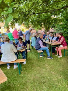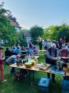 Bei bestem Wetter kamen wir im Pfarrgarten zusammen, wo uns zur Begrüßung, Aperol-Spritz und eine wunderbare heitere Stimmung erwartete. In entspannter Atmosphäre genossen alle die Gemeinschaft und auch das köstliche Essen. Insbesondere war es toll, einfach mal Zeit füreinander zu haben.