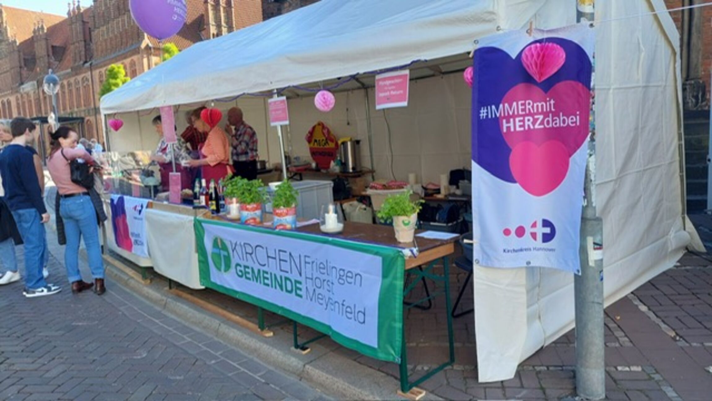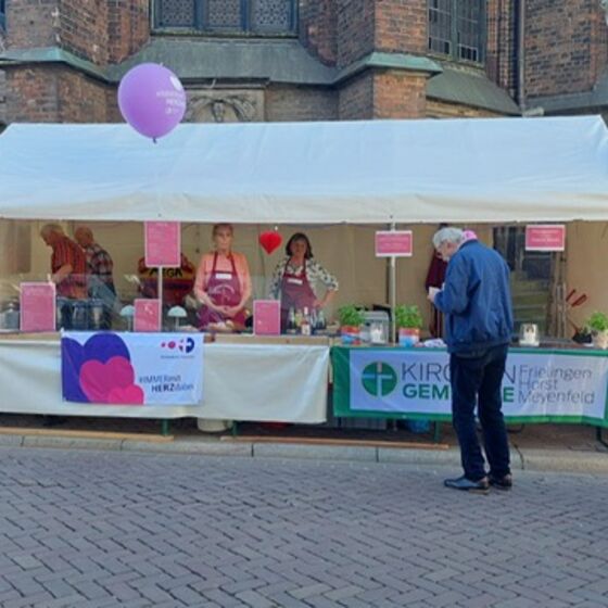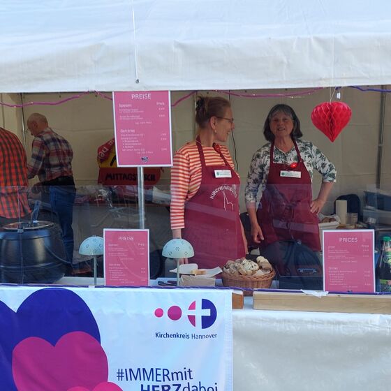 Mit vereinten Kräften haben wir den gesamten Stand geplant, organisiert, aufgebaut und über 350 Portionen Suppe verkauft. Dabei konnten wir uns auf jede und jeden Einzelnen verlassen. Mit unseren unterschiedlichen Begabungen haben wir dieses Projekt gestemmt, und das war nicht ganz einfach bei all den Hygienevorschriften, die solch eine Großveranstaltung mit sich bringt. Unter dem Motto des Kirchenkreises Hannover „immer mit HERZ dabei“ konnten wir uns gut identifizieren, viele Herz-Aufkleber und Herz-Blöcke haben wir an die Besuchenden verschenkt. Durch ein großes Banner mit unserem neuen Logo war die Kirchengemeinde Frielingen-Horst-Meyenfeld auch gut sichtbar vertreten.