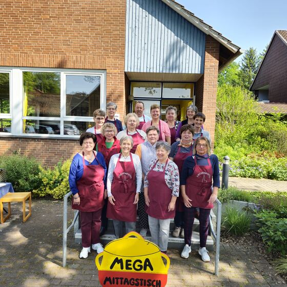 Freitags von 12 bis 14 Uhr öffnen wir unser Gemeindehaus für Jung und Alt und laden zum Mehrgenerationen (MEGA) Mittagstisch ein. Ein Team von ca. 20 ehrenamtlichen Mitarbeitenden kocht ein leckeres Menü, zu dem ca. 100 Menschen aus unseren Orten Frielingen, Horst, Meyenfeld kommen. Auch Sie sind herzlich eingeladen! Egal, ob Sie sich mit Freunden im Gemeindehaus verabreden oder einfach spontan hereinschauen, eine Anmeldung ist nicht erforderlich. Damit die Kosten für die Lebensmittel gedeckt werden, bitten wir um eine Spende.